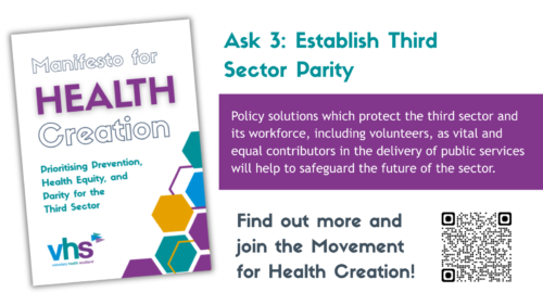 VHS will continue to promote the asks detailed in our Manifesto for Health Creation, published in October last year, until the election. We will not meet the criteria to register as a non-party campaigner.